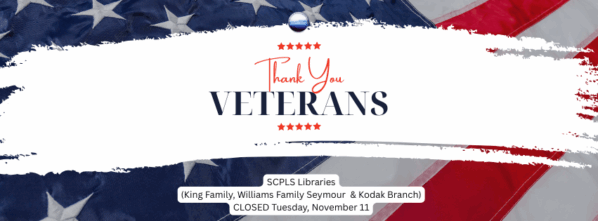 SCPLS libraries closed in observance of Veterans Day – November 11.