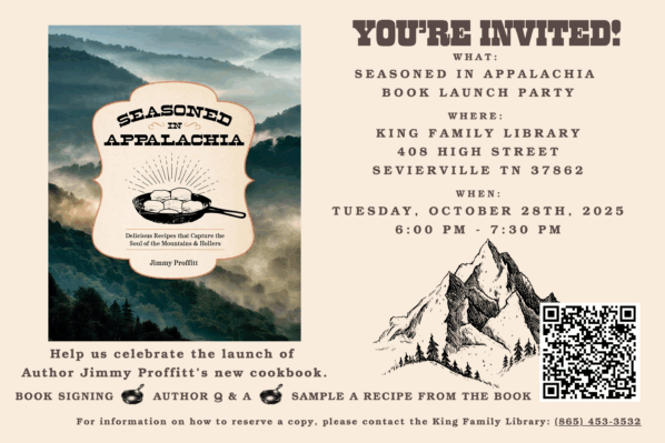 Join us at the King Family Library for a cookbook book launch by local author and chef, Jimmy Proffitt, on October 28 from 6:00-7:30 pm.