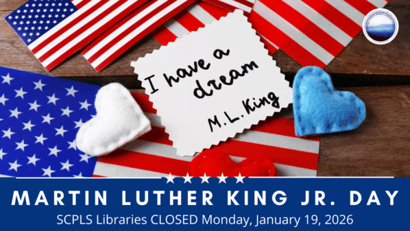 SCPLS libraries will be closed for the MLK Jr. Day holiday on January 19. 2026.